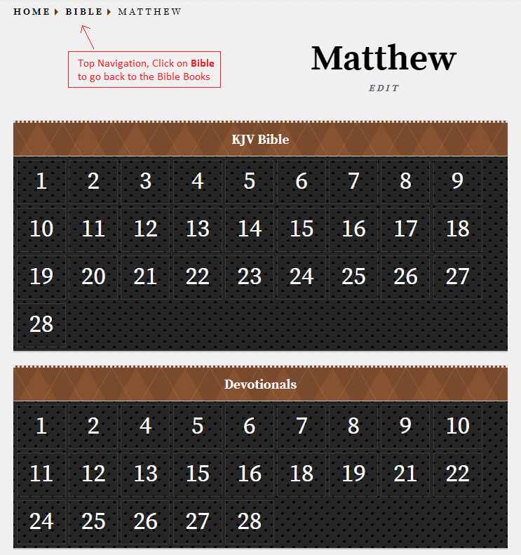 A new Bible Chapter Navigation has been added to all the books of the Bible, on Daily Christian Devotionals. I encourage you all to check out the newly improved Bible page. A lot of thought and effort has been put into the Bible page, in order to make navigating the using the Bible much easier. I pray that you will visit this page often and read the Bible daily. The Bible is the Word of God. We can draw closer to God through every Word.