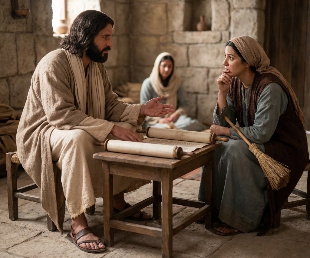 Jesus visits Mary and Martha at Bethany. By all accounts found within the pages of the Bible, it can be assumed that Mary, Martha and Lazarus were treasured friends of Jesus. While she is bustling about the kitchen, her sister is sitting at Jesus’ feet and listening to his word. Notice how she addresses the Messiah. She begins her complaint with an accusation, accusing Jesus of not caring about her dilemma. She wants justice.